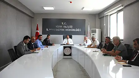 Iğdır İl Milli Eğitim Müdürü Aziz Gün, yeni eğitim-öğretim yılı hazırlıklarını değerlendirmek ve yürütülecek çalışmaları planlamak amacıyla kurum amirleriyle bir araya geldi.