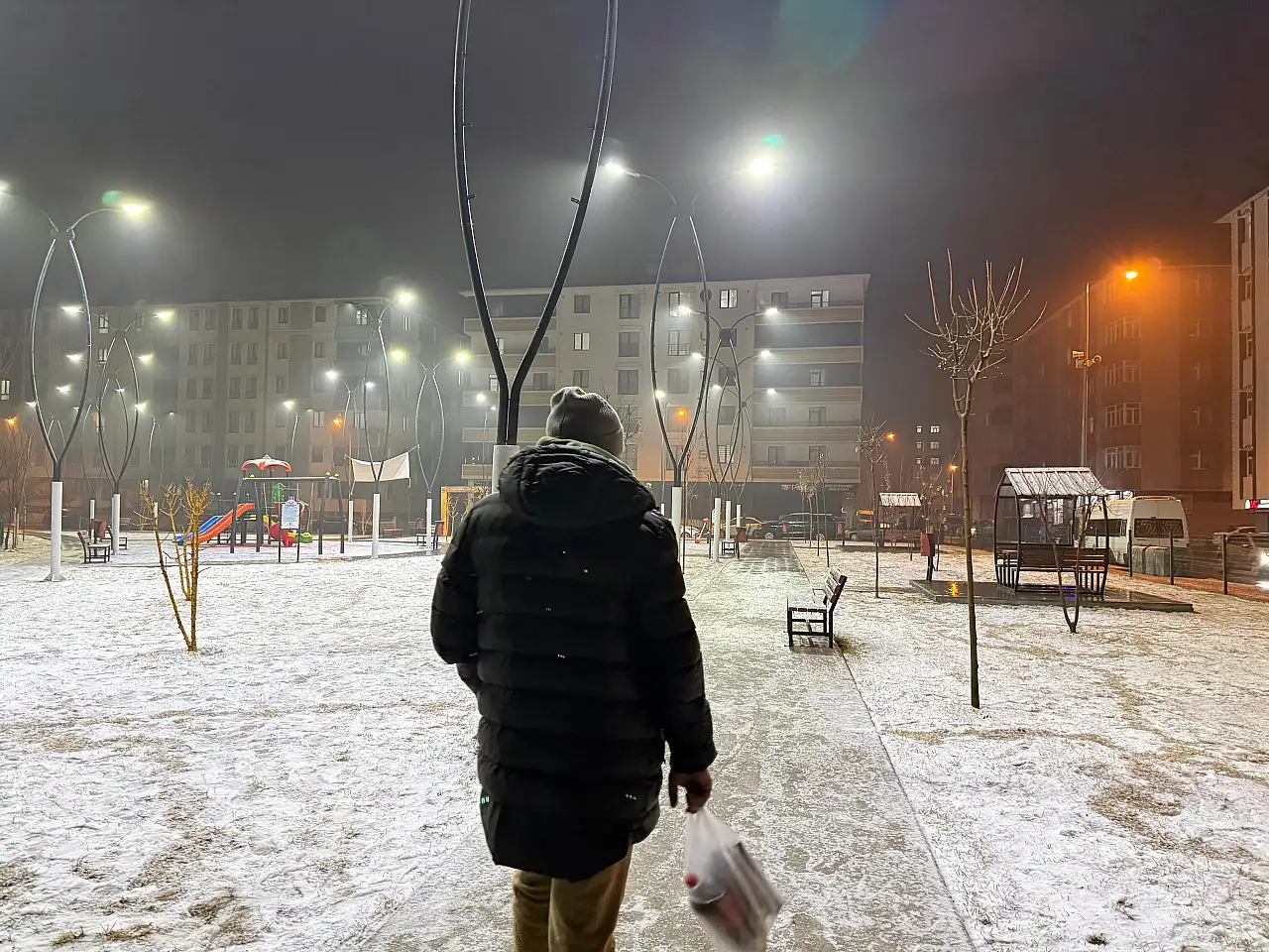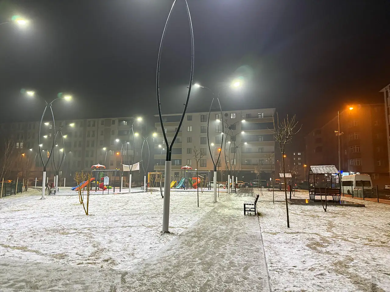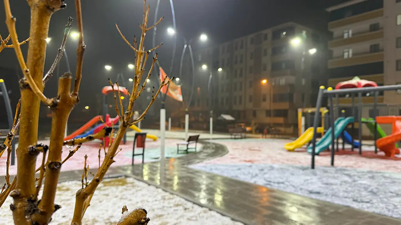 Gece saatlerinde hava sıcaklığının düşmesiyle birlikte bölgede belirgin bir sessizlik hâkim oldu. Günlük kullanımda çocuklar ve aileler tarafından yoğun şekilde tercih edilen park, kar yağışı nedeniyle boş kaldı. Oyun alanları, banklar ve yürüyüş yolları ince kar tabakasıyla kaplanırken park içerisindeki aydınlatmalar karla birleşerek sakin bir görüntü oluşturdu.