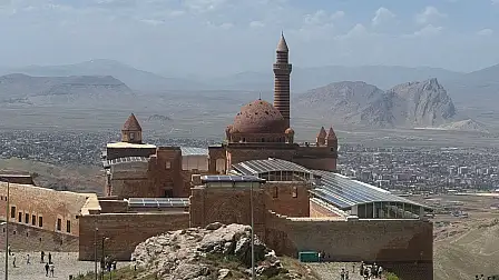 Ağrı'nın Doğubayazıt ilçesinde Lale Devri'nde inşa edilen en önemli eserler arasında yer alan tarihi İshak Paşa Sarayı, 9 günlük Kurban Bayramı tatilinde yurdun farklı bölgelerinden gelen ziyaretçileri ağırlıyor.