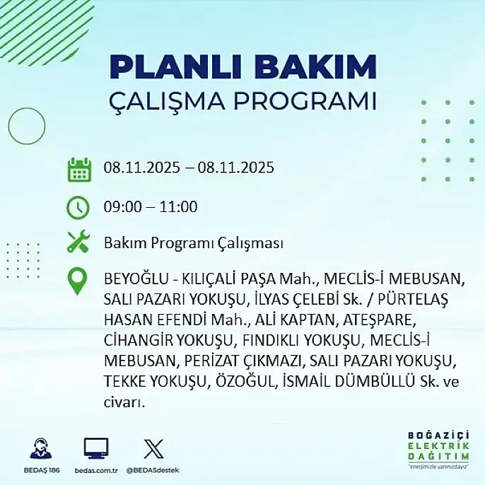 - İstanbul'da 8 Kasım'da Elektrik Kesintisi: Bakım ve Altyapı Çalışmaları Nedeniyle Kesintiler Olacak!