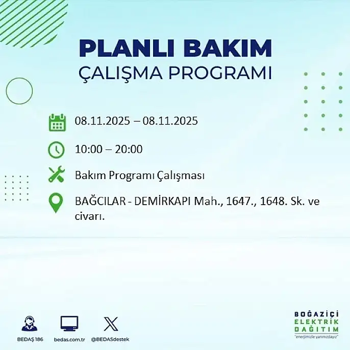 - İstanbul'da 8 Kasım'da Elektrik Kesintisi: Bakım ve Altyapı Çalışmaları Nedeniyle Kesintiler Olacak!
