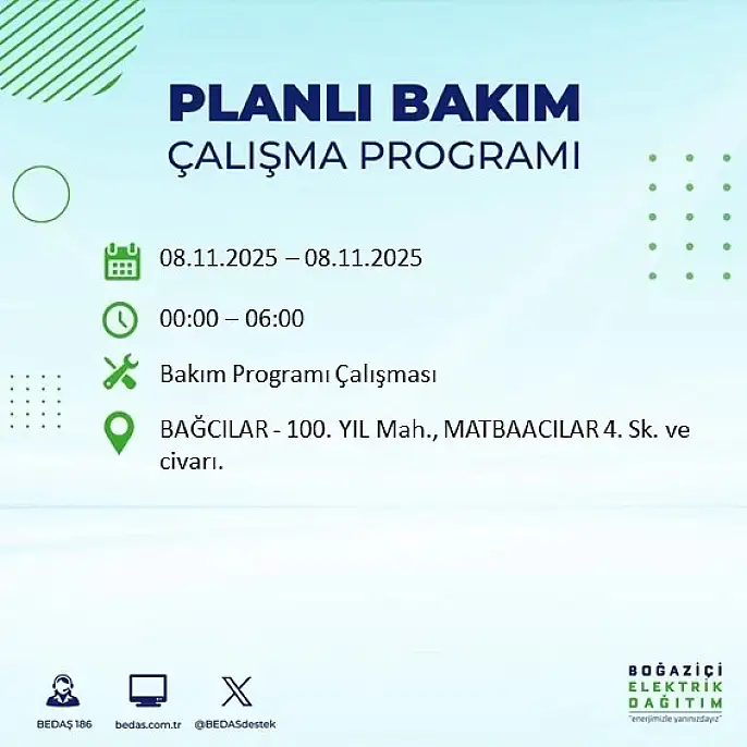 - İstanbul'da 8 Kasım'da Elektrik Kesintisi: Bakım ve Altyapı Çalışmaları Nedeniyle Kesintiler Olacak!