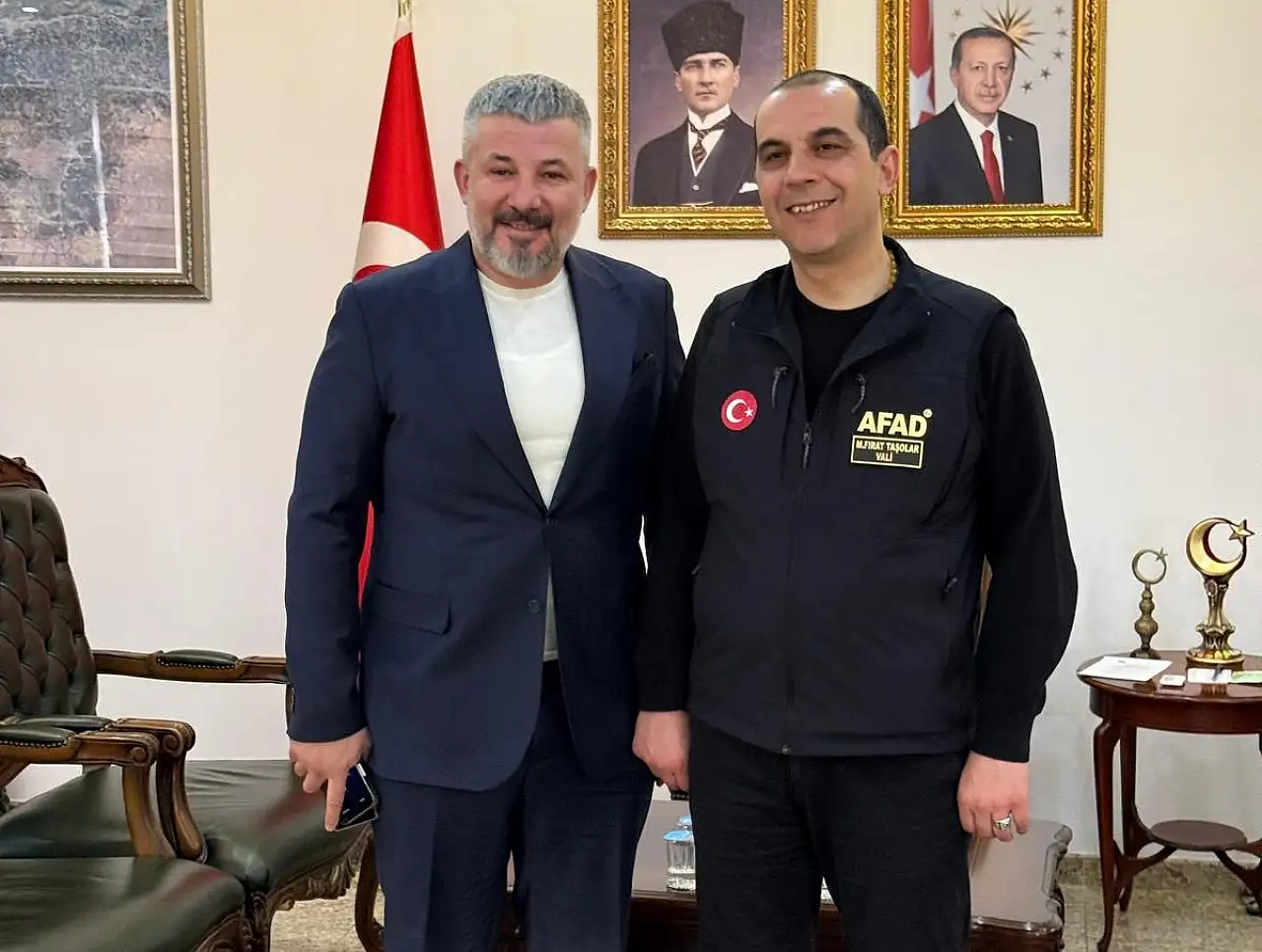 Ağrı’nın başarılı iş insanları arasında yer alan Azad Medeni Kahraman, geçtiğimiz ay yayımlanan Valiler Kararnamesi ile Önder Bozkurt’un Ağrı Valiliği görevine, M. Fırat Taşolar’ın ise Iğdır Valiliği görevine atanması dolayısıyla her iki ismi de makamlarında ziyaret etti. Kahraman, ziyaretler sırasında yeni görevlerinde başarılar dileyerek hayırlı olsun temennilerini iletti.