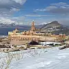 Ağrı'nın Doğubayazıt ilçesinde yer alan ve Osmanlı mimarisinin en görkemli eserleri arasında gösterilen İshak Paşa Sarayı, karla kaplanan siluetiyle kış mevsiminde de ziyaretçilerini zamanda bir yolculuğa çıkarıyor.
