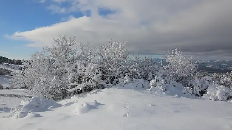 Uşak'ın Banaz ilçesinde mevsimin ilk karı yüksek rakımlı tepelere düştü.Şehir merkezinde soğuk ve don etkili olurken rakımın bin 200`lü rakamlara ulaştığı Paşacık yaylasını adeta bir halı gibi örten kar kartpostallık görüntüler oluşturdu.Geneli ormanla kaplı alanlar ve Uşak`taki tek rüzgar tribünlerini barındıran bölgedeki görüntüler göz kamaştırdı.Drone ve fotoğraflarla kayıt altına alınan bölgede kar yağışı sonrası fotoğraf sanatçılarının da ilgisini çekiyor.