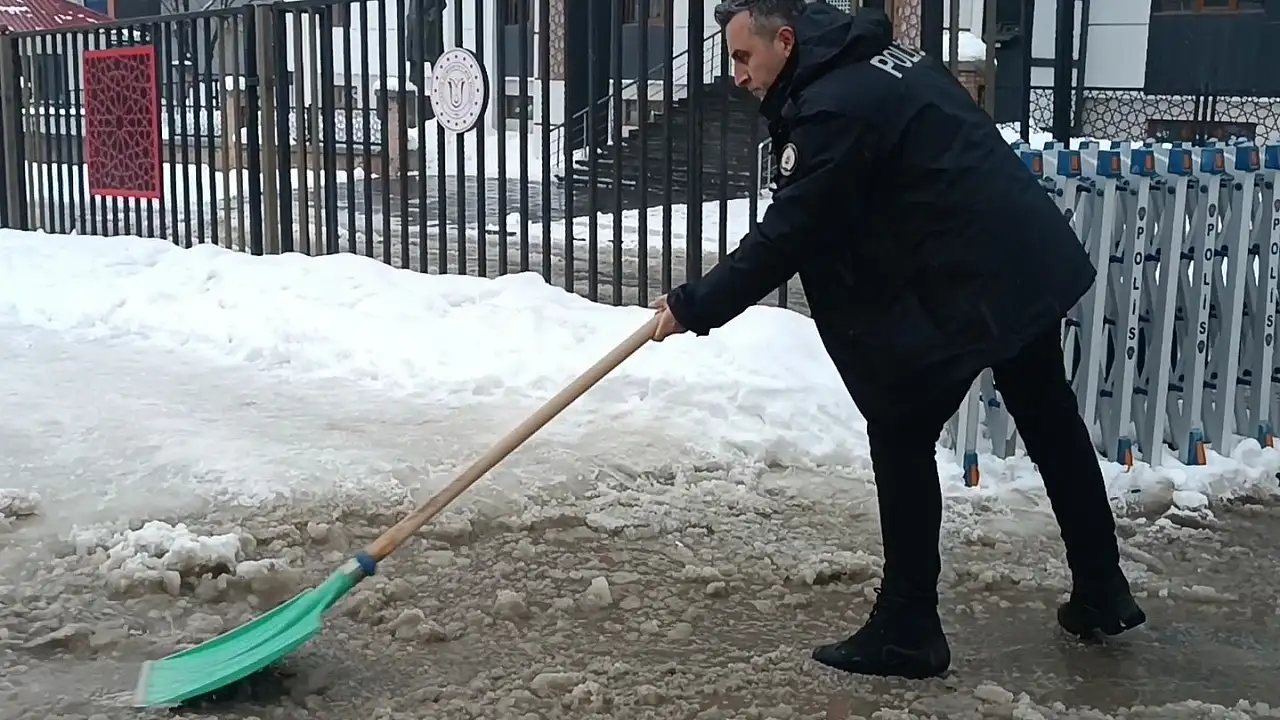 Çevrede kürek temin eden polis memuru, kaldırım ve yol üzerinde biriken kar sularını rögar yönüne doğru akıtmak için çalışma başlattı. Kısa sürede yapılan müdahale sayesinde suyun seviyesi belirgin şekilde düşerken, yayalar güvenli biçimde yollarına devam edebildi. Polis memurunun bu davranışı, olay yerinde bulunan vatandaşlar tarafından memnuniyetle karşılandı.
