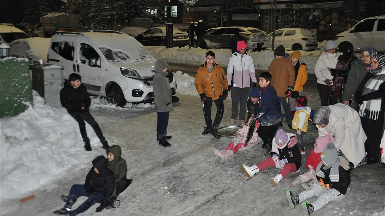 Kar yağışını fırsata dönüştüren aileler, çocuklarıyla birlikte yokuşta kayarak eğlenceli vakit geçirdi. Neşeli kahkahaların yükseldiği mahallede, bazı vatandaşlar da evlerinin önünde durarak bu renkli anları izledi. Çocukların sevinci ve ailelerin katılımı, mahallede sıcak ve samimi bir atmosfer oluşturdu.