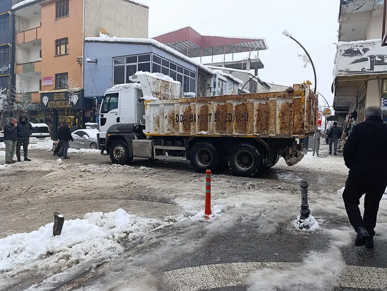 Ağrı'nın Doğubayazıt ilçesinde etkisini artıran yoğun kar yağışı sonrası belediye ekipleri sahadaki çalışmalarını aralıksız sürdürüyor.