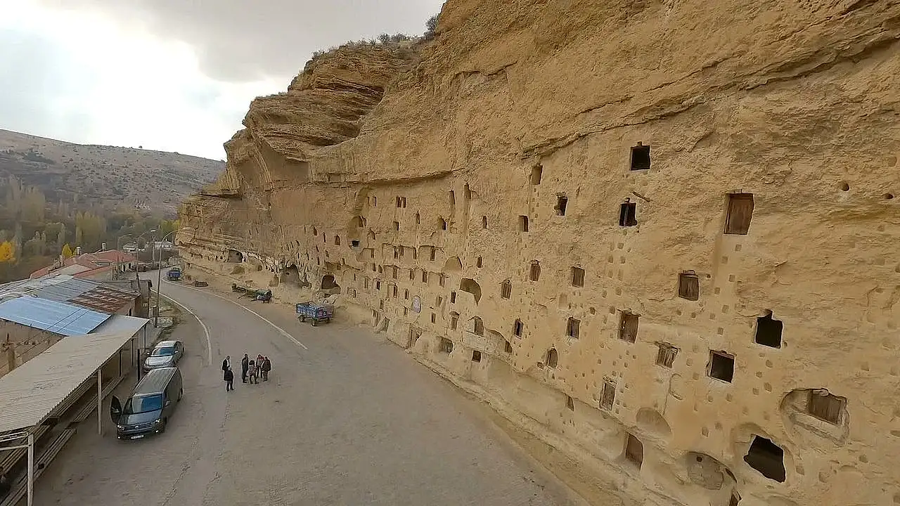 a) Manazan Mağaraları: Karaman İli Taşkale Kasabası'nda yer alan Manazan Mağaraları, Yeşildere Vadisi'nin kuzeyindeki kireç taşı arazide yüksek bir kaya kütlesine oyulmuş beş katlı toplu meskenlerden oluşur.