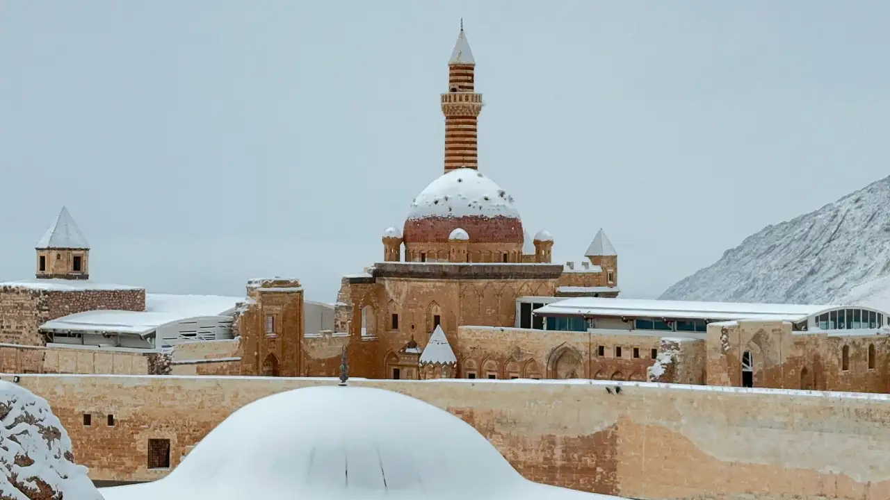 Ağrı’nın Doğubayazıt ilçesinde yer alan ve UNESCO Dünya Mirası Geçici Listesi’nde bulunan İshak Paşa Sarayı, kış mevsiminde etkili olan kar yağışıyla birlikte farklı bir görünüme büründü. Osmanlı mimarisinin önemli eserlerinden biri olarak kabul edilen saray, karla kaplanan avluları, terasları ve taş işçiliğiyle ziyaretçilerin ilgisini çekiyor.