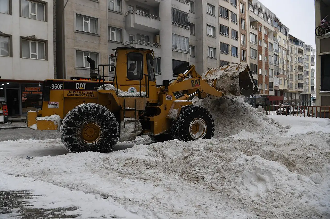 Muş’ta etkili olan kar yağışının ardından belediye ekipleri sahadaki çalışmalarını kesintisiz sürdürüyor. Ana caddelerde yoğun mesai harcayan ekipler, 17 mahalle ile ara sokaklarda kar temizleme ve yol genişletme çalışmalarına devam ediyor.