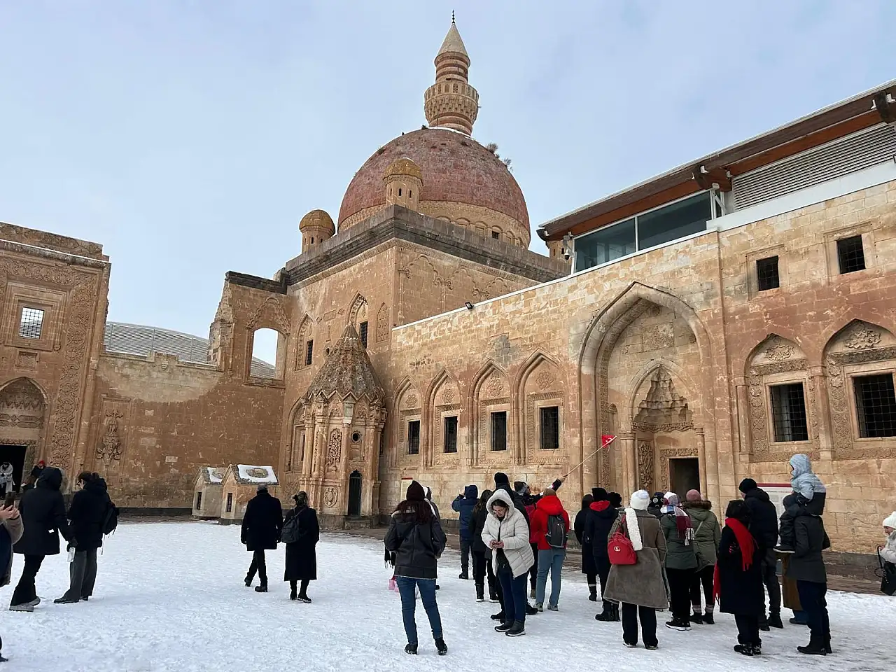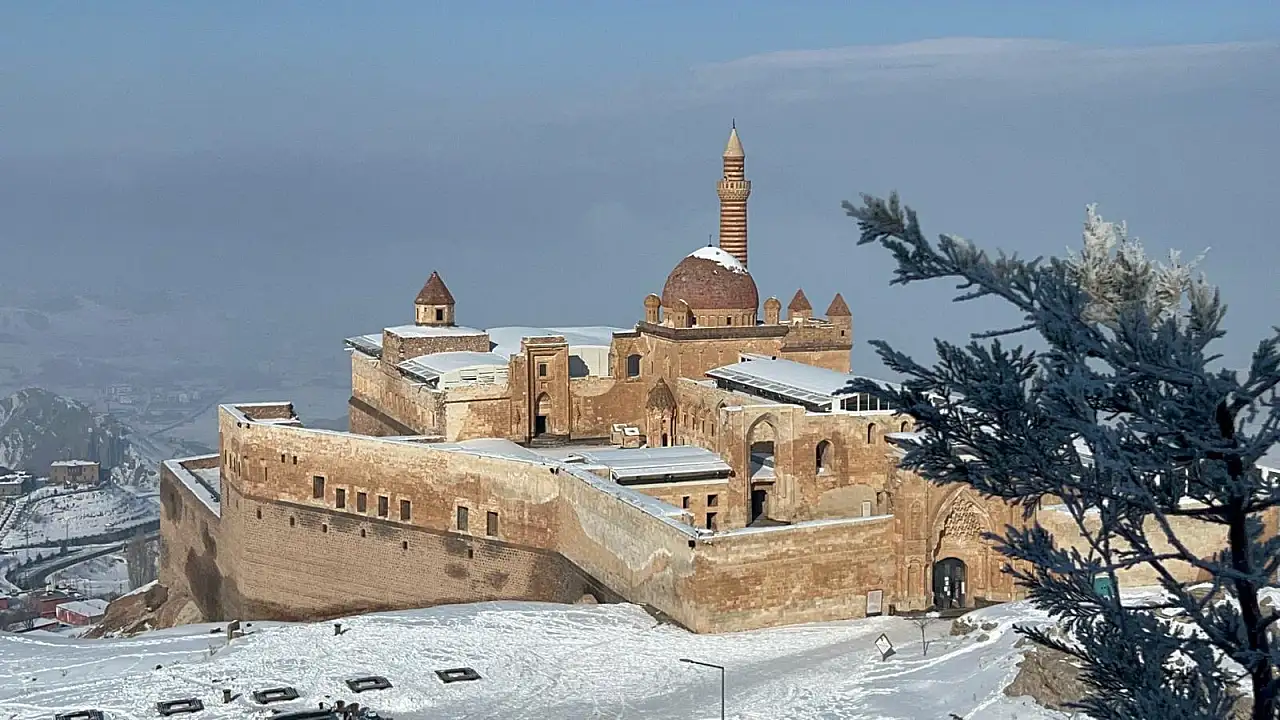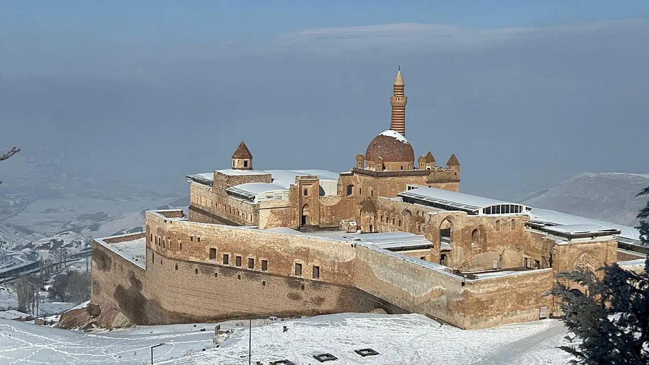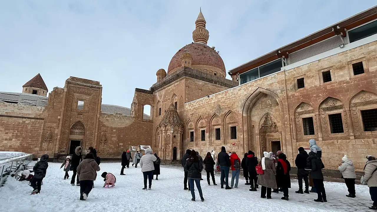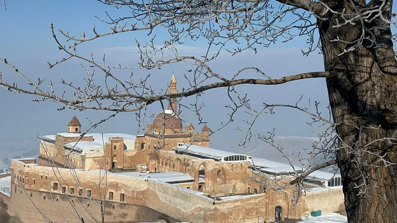Kış şartlarına rağmen ziyaretlerin devam ettiği saray, Doğubayazıt’ın turizm potansiyelini canlı tutan önemli yapılar arasında yer alıyor.