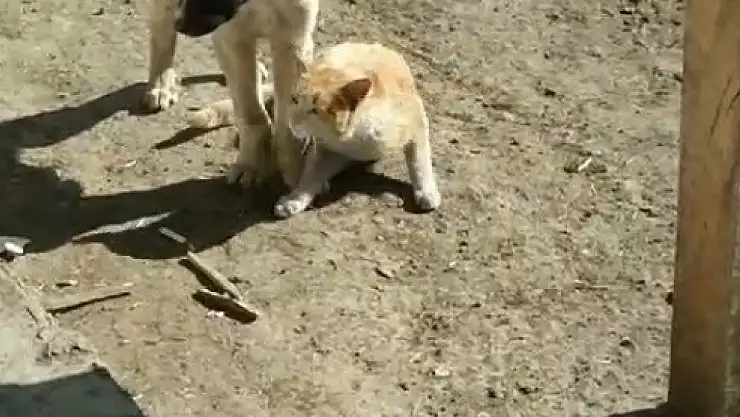Kars’ın sert kış şartları, doğadaki canlılar için zorlu günler anlamına gelse de, Akyaka ilçesine bağlı Şahnalar köyünde kaydedilen bir görüntü, soğuğa inat sıcacık bir dostluğu gözler önüne serdi. Köy sakinlerinden biri tarafından çekilen görüntülerde, bir kedinin sevecen tavırlarla bir köpeğe sokularak ona yaslandığı, güvenle yanında durduğu ve oyun oynadığı anlar yer alıyor.