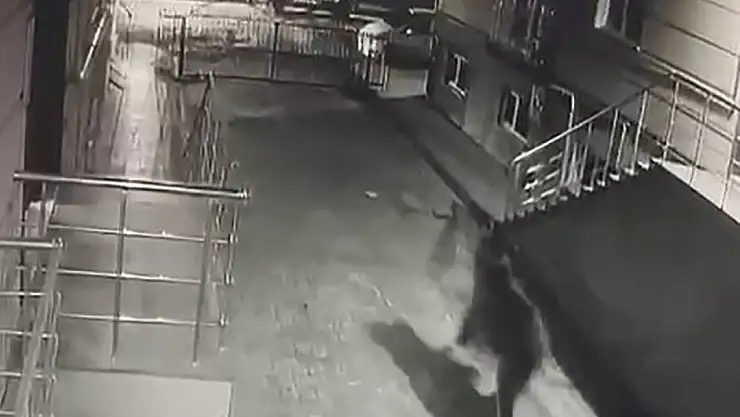 Her iki tarafın birbirlerini görerek kaçtığı görüntülüyor gülümsetti. Bu anlar saniye saniye güvenlik kamerasına yansıdı.