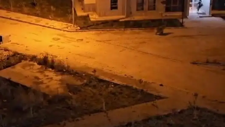 Gece geç saatlerde evine dönmek isteyen bir vatandaş, çöplükte yiyecek arayan boz ayı ile karşılaştı. Ayının bir süre vatandaşın peşinden koştuğu anlar, mahalle sakinleri tarafından cep telefonu ile görüntülendi. Vatandaş, hızla bir binanın içine sığınarak tehlikeden kurtuldu.