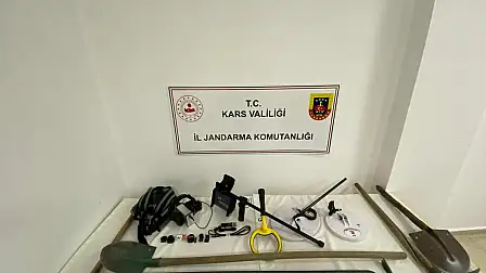 Jandarma ekiplerince düzenlenen operasyonda, 2'si kadın 9 kişi suçüstü yakalandı. Şüphelilerin kazı yaparken kullandıkları kamyonet, 2 dedektör, 2 kürek, 2 kazma ve 1 levyeye el konuldu.
