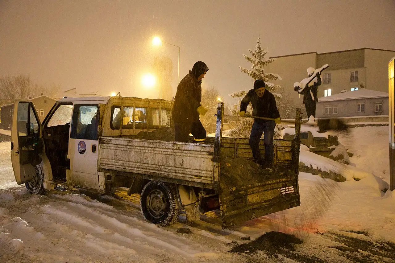 Kars Belediyesi ekiplerinin özellikle ana arterler başta olmak üzere tüm mahallelerde kar küreme ve tuzlama çalışmalarını 7/24 esasına göre sürdürdüğü belirtildi. Yoğun kar yağışının günlük yaşamı olumsuz etkilememesi için sahada görev yapan ekiplerin, ulaşımın güvenli şekilde sağlanmasına yönelik çalışmalarına aralıksız devam ettiği ifade edildi.