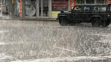 Kars'ın Sarıkamış ilçesinde etkili olan sağanak yaşamı olumsuz etkiledi.
