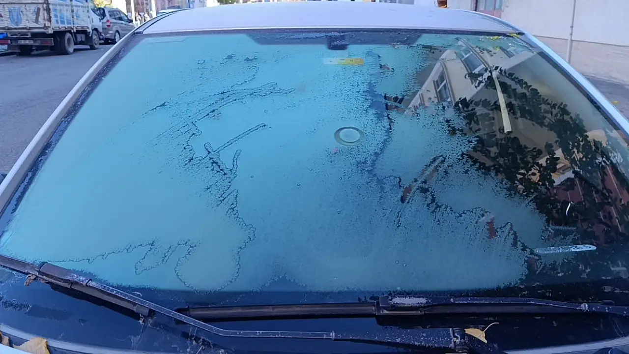 Kars'ta soğuk hava etkisiyle araç camları dondu, buzlanma tehlikesi arttı