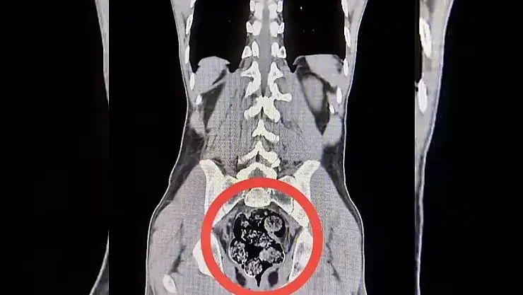 Harakani Devlet Hastanesine götürülen şüphelilerden Amır Rafıeı S'nin mide ve bağırsaklarında 7 parça halinde 203,02 gram sentetik uyuşturucu tespit edildi.