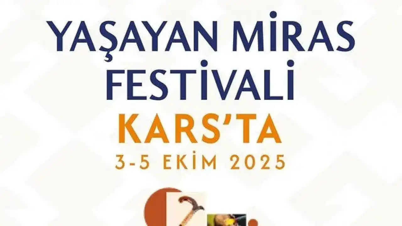 Kars'ta 3-5 Ekim 2025'te düzenlenecek Kars Yaşayan Miras Festivali, Somut Olmayan Kültürel Miras Taşıyıcıları ve sanatçılara ev sahipliği yapacak. Çeşitli atölyeler, sergiler ve konserlerle kültürel mirası tanıtmayı, el sanatlarını desteklemeyi hedefliyor.