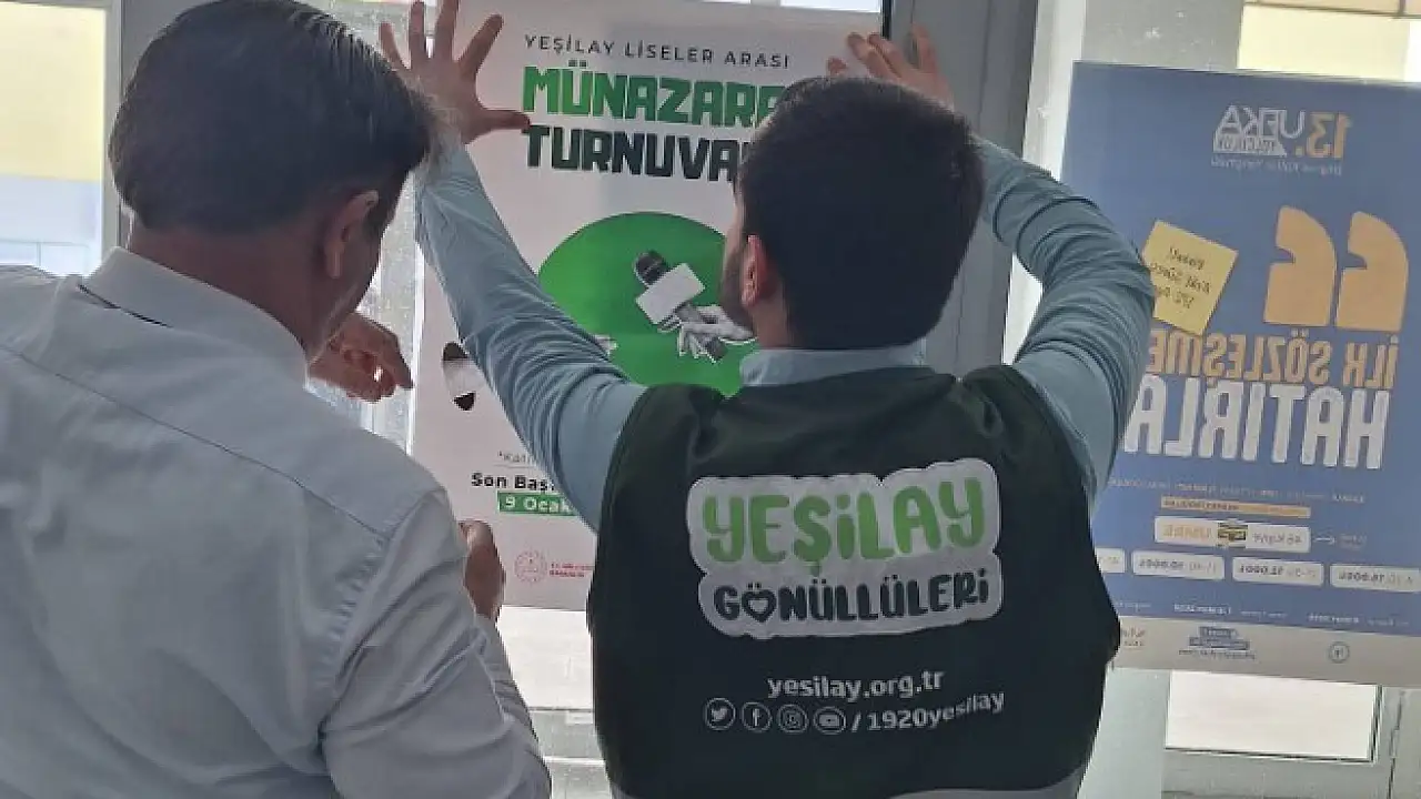 Kars Yeşilay, Yeşilay Münazara Turnuvaları için Kars'taki çeşitli liselerde tanıtım yaparak afişlerini astı.