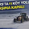 Kars'ta yoğun kar yağışı ve tipi nedeniyle 11 köy yolu ulaşıma kapandı. İl Özel İdaresi ekipleri, greyder ve kar küreme kamyonlarıyla yolları açmak için çalışmalarını sürdürüyor. Çabalar, etkili tipinin devam etmesi sebebiyle zorluklarla karşılaşıyor.