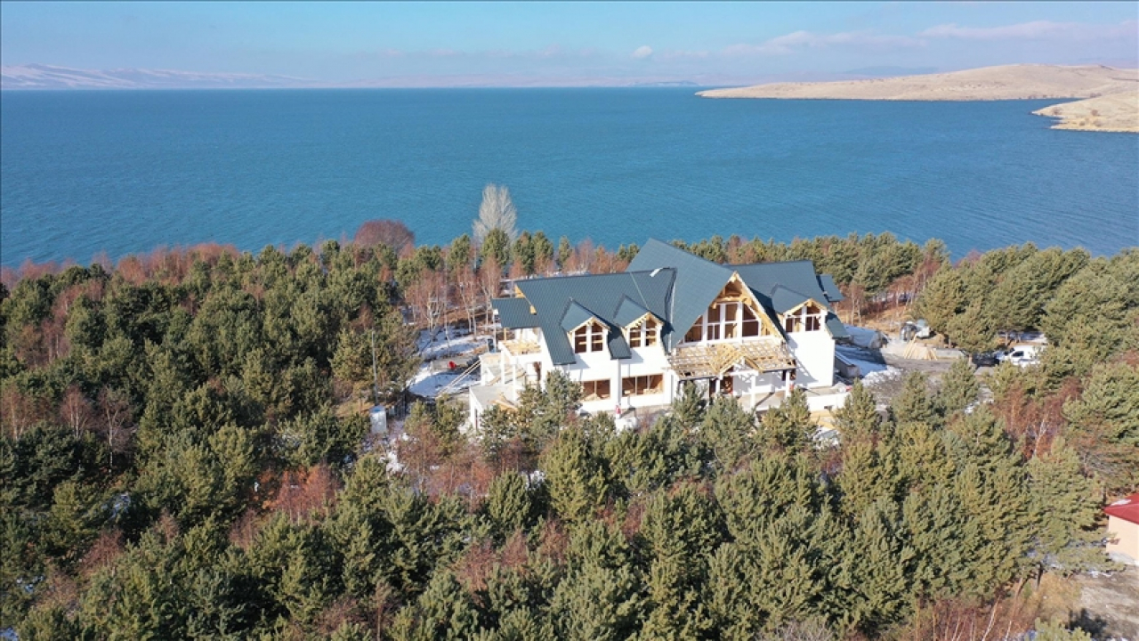 Arpaçay Kaymakamı Muhammed Burak Akköz, AA muhabirine, Çıldır Gölü'nün Kars'ın Arpaçay ilçesi bölümünde yer alan kütük evin yapımında sona gelindiğini söyledi.