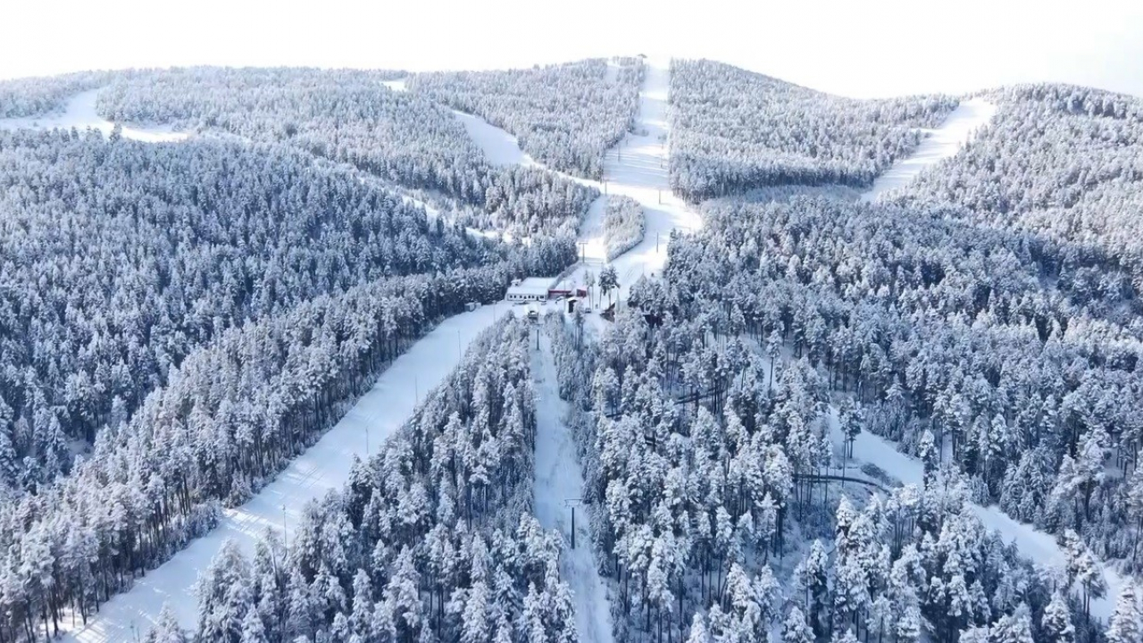 Beyaza bürünen Sarıkamış’ta drone ile kaydedilen görüntülerde, Sarıkamış Kayak Merkezi’nin pistleri, telesiyej hatları ve sarıçam ormanlarının yeşili ve karın bembeyaz örtüsüyle kartpostallık görüntüler sundu.
