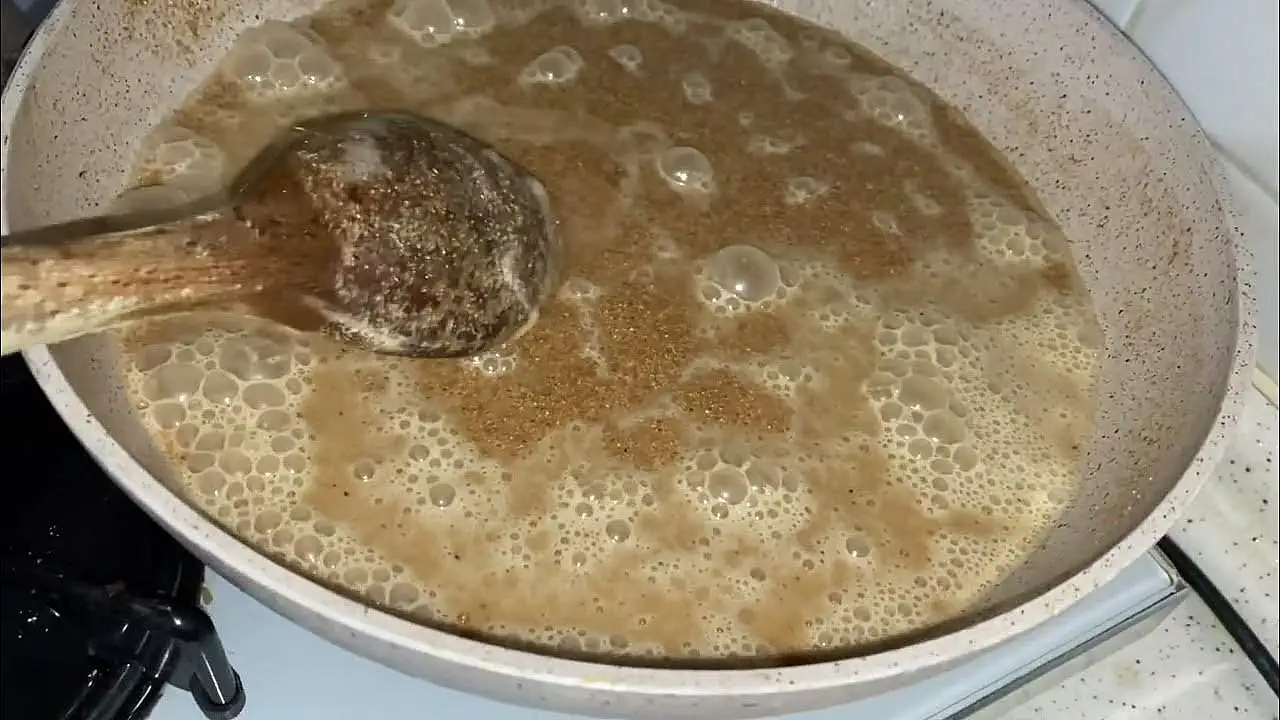 - Karıştırma: Kavrulan una yavaş yavaş şekerli su veya pekmezi ekleyin. Bu esnada sürekli karıştırın ki topaklanma olmasın. Karışım koyu bir kıvam alana kadar kısık ateşte karıştırmaya devam edin (yaklaşık 5 dakika).