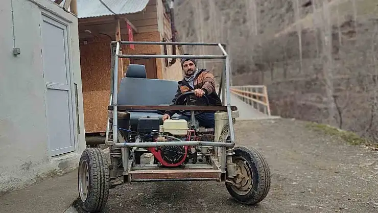 Pandemi döneminde ortaya koyduğu girişimi, ailesinin ve kendi yaşamını kolaylaştıran pratik bir çözüm sunuyor. Mehmet Algün, çok az maliyetle yaptığı aracıyla mahalledeki tüm sokaklara rahatlıkla girebiliyor ve zorlu arazi şartlarda yük taşıma sorununu çözmüş durumda. Eski bir araba şasesini kullanarak kısaltma ve çeşitli eklemelerle özgün aracını ortaya çıkaran Algün, internetten bulduğu küçük bir motoru kullanarak aracını güçlendirdi.