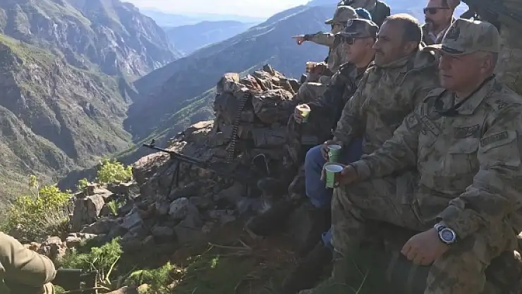 Tunceli'de girilmez denilen ve bugün 3 teröristin etkisiz hale getirildiği yere Vali Tuncay Sonel, giderek Mehmetçikle çay içip, moral verdi.
