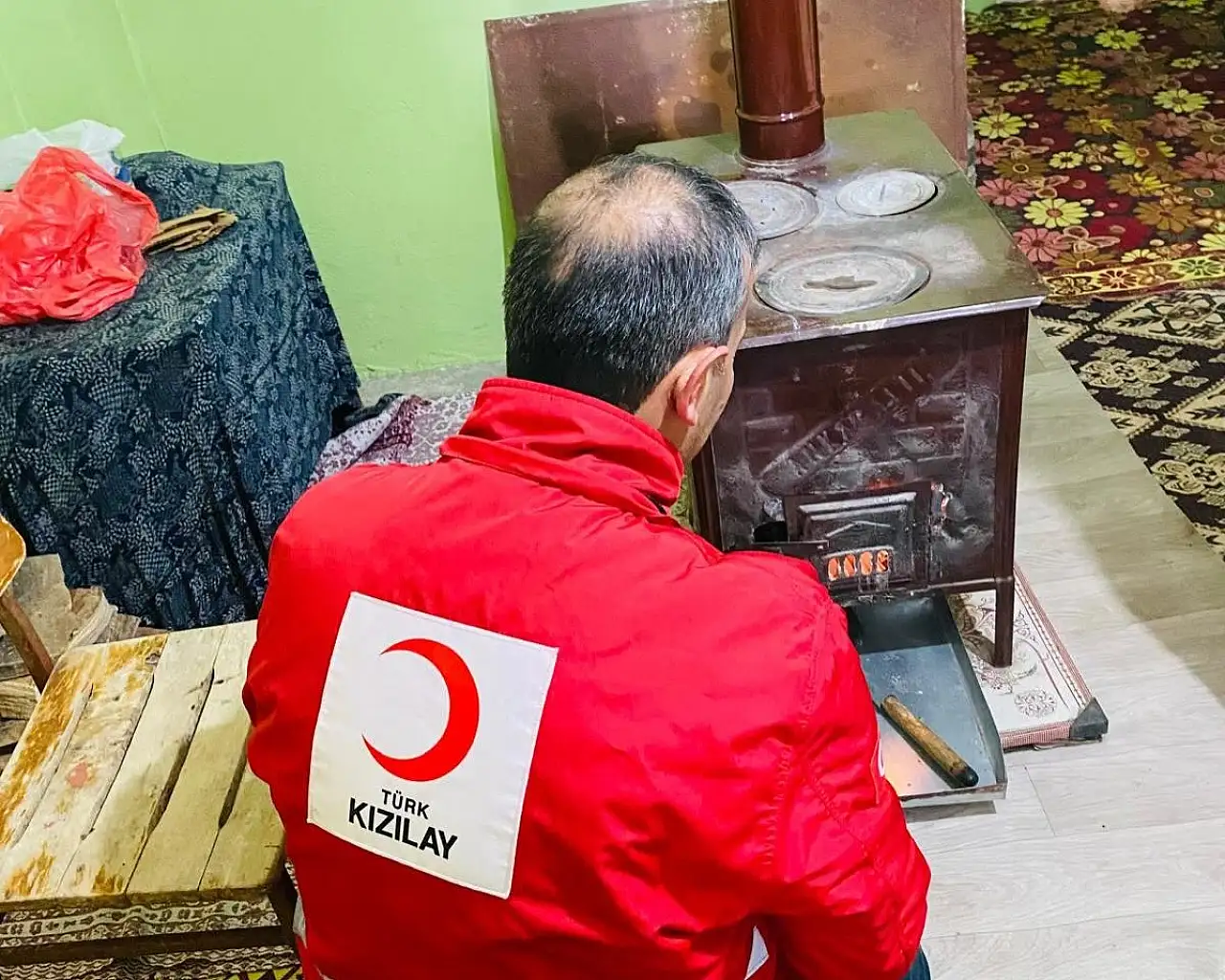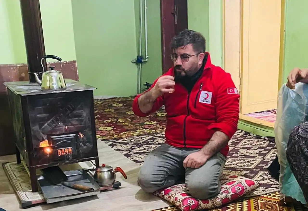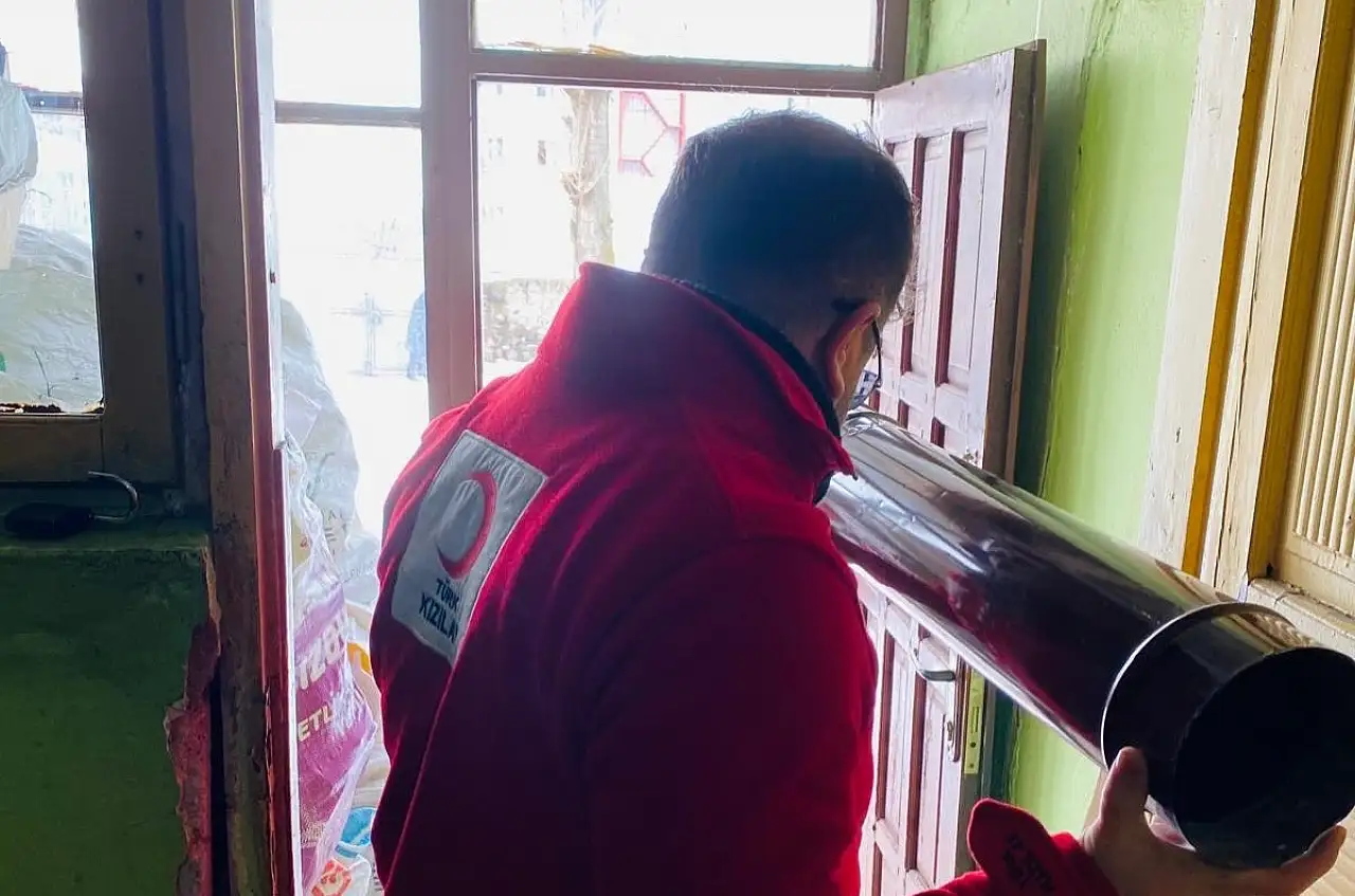 Kış gününde kapıyı Kızılay çaldı: Sobayı temizleyip çay demlediler