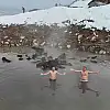 Dondurucu soğuğa aldırış etmeyen vatandaşlar, kar manzarası eşliğinde sıcak suya girerek benzersiz bir rahatlama yaşıyor. Sıcak sudan çıkıp kısa süreli kar banyosu yapanlar, ardından yeniden kaplıcaya girerek bu sıra dışı deneyimi tamamlıyor. Kaplıcanın çevresinde toplanan mandalar ve diğer hayvanların da sıcak sudan faydalanması, insan ve doğanın iç içe geçtiği etkileyici anlara sahne oluyor.