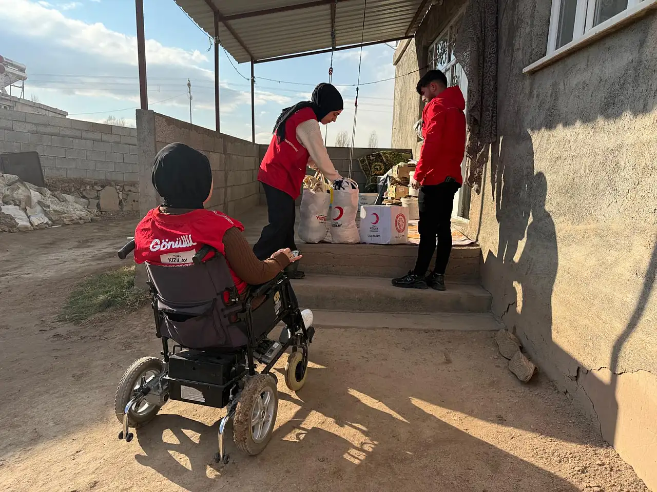 Kızılay Doğubayazıt gönüllüleri, 3 Aralık Dünya Engelliler Günü kapsamında özel gereksinimli bireylere gıda desteği sağladı.