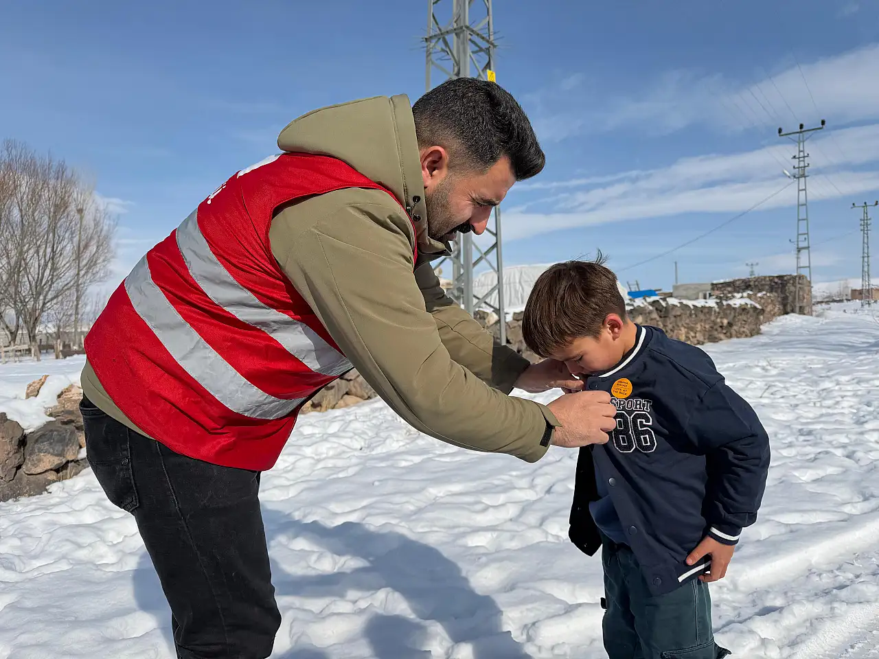 Soğuk havanın etkili olduğu bölgede gerçekleştirilen çalışmada, çocuklara ve ailelere mont, bot ve çeşitli kışlık giysiler teslim edildi. Yapılan yardımlar sırasında özellikle çocukların mutluluğu dikkat çekerken, köy sakinleri desteklerden duydukları memnuniyeti dile getirdi.