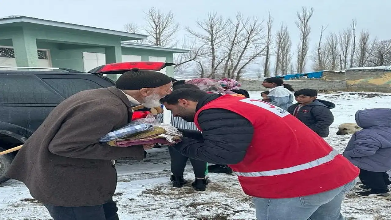 Ağrı’da kış şartlarının zorluğuna rağmen Kızılay gönüllüleri, yolda mahsur kalanlardan öğrencilere, ihtiyaç sahibi ailelerden herkese yardım eli uzatıyor.
