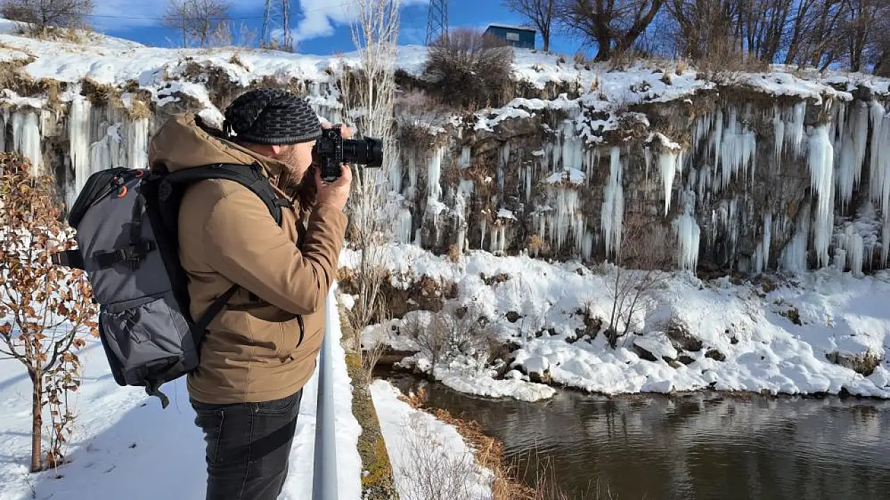 “35 yıldır Van Gölü çevresinde her taraftan yaz, kış, soğuk, sıcak demeden fotoğraf çekiyoruz. Bugün de buraya geldik. Kaç gündür yol kapalıydı, gelemiyorduk. Yollar açılınca buraya geldik. Tabiat güzelliklerini topluma arz etmek için, sosyal medyada paylaşmak için çekimler yapıyoruz. Burada eriyen kardan dolayı sarkıtlar oluşmuş. Sarkıtların yüksekliği 30-35 metre. Gündüz hava sıcaklığı eksilere düşüyor. Hava ayaz olunca, soğuk olunca eksi 15-25'e kadar hava sıcaklığı oluyor. Haliyle güzel bir yağış olmuş. Bereketli olsun. Ülkemizin her tarafından bu yağışın yağmasını arzu ediyoruz. Burada biz gelip fotoğraf çekiyoruz. Sosyal medyada paylaşınca, ülkemizin her tarafından fotoğrafçılar, vatandaşlar gelip buradan bu güzellikleri ölümsüzleştiriyor. Haliyle fotoğraf çekip kendi sitelerinde paylaşıyorlar. O da bizim ilimiz için çok güzel bir görsel oluyor.”