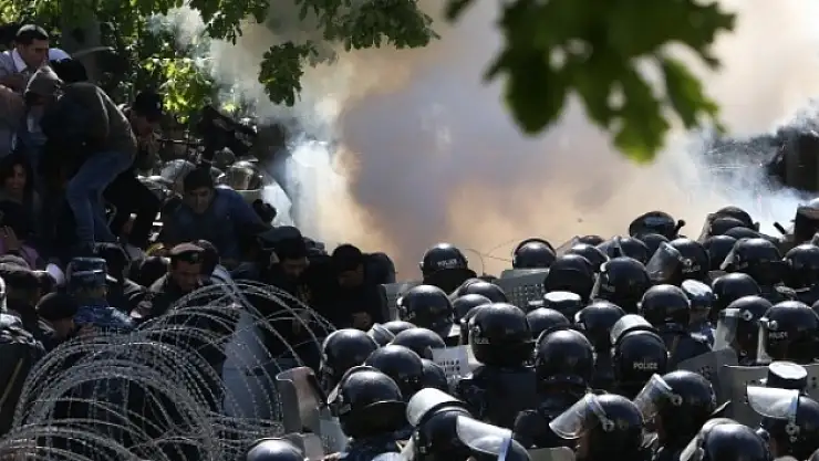Ermenistan'ın başkenti Erivan yine karıştı. Binlerce muhalif sokağa dökülerek geçici başbakanı protesto etti.