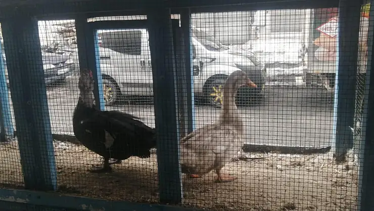 Ağrı'nın Meydan mevkisinde kurulan sebze pazarında satışa sunulan canlı ördekler vatandaşların dikkatini çekti.
