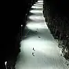 Kristal kar gece ışıklarında parlıyor