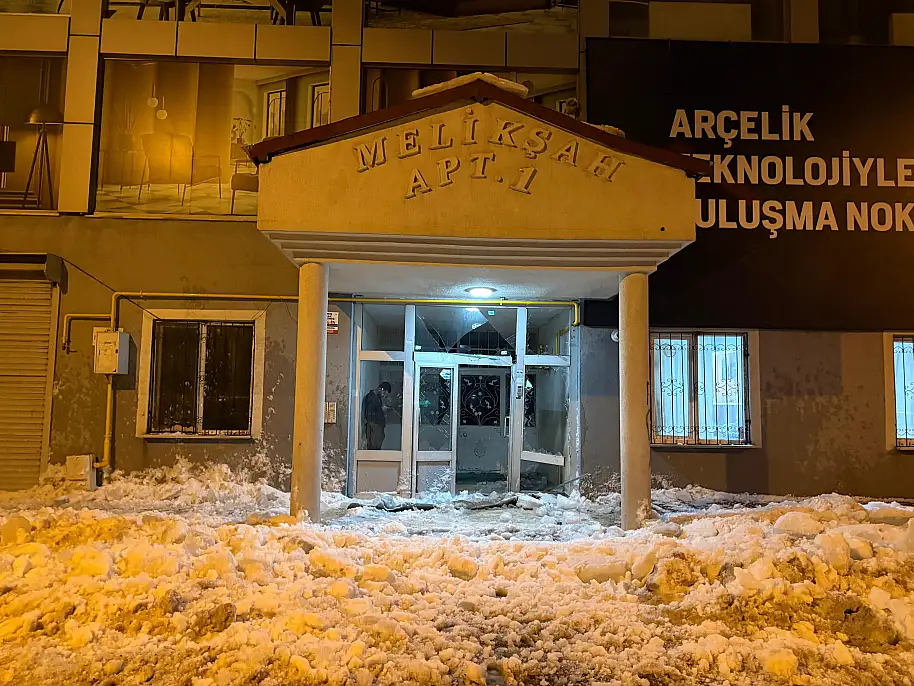 Ağrı'da çatıdan düşen kar ve buz kütlesi apartman girişini kullanılamaz hale getirdi.