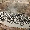 Bitlis'in Güroymak ilçesindeki Budaklı kaplıcasında, kış aylarında mandaların temizlenmesi geleneksel bir etkinlik olarak dronla görüntülendi. Sıcak kaplıca suyu, mandaların hem temizlenmesi hem de soğuktan korunması için kullanılıyor, bu manzara bölgeye özgü bir çekicilik kazandırıyor.