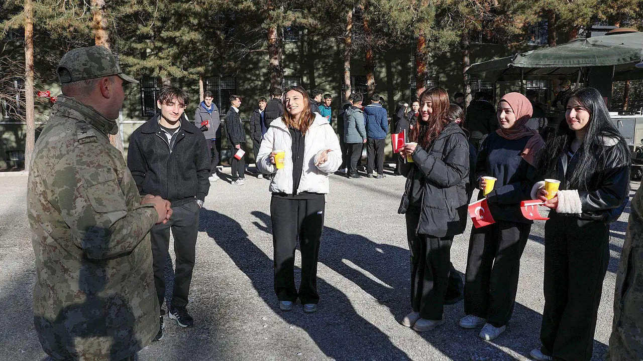 Erzurum Gençlik ve Spor İl Müdürlüğü'nün yürüttüğü 'Mehmetçik ile Bir Gün' Projesi kapsamında Şükrüpaşa Anadolu Lisesi öğrencileri ve öğretmenleri, 109. Topçu Birliği'ni ziyaret etti.