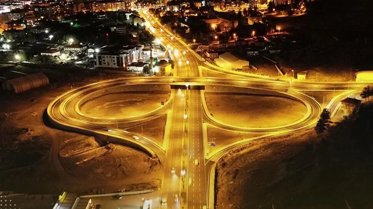 Erzurum Şehir Geçişi'nde 2021 yılında hizmete açılan Mevlâna Köprülü Kavşağı, şehir içi ve transit trafiği rahatlatıyor.