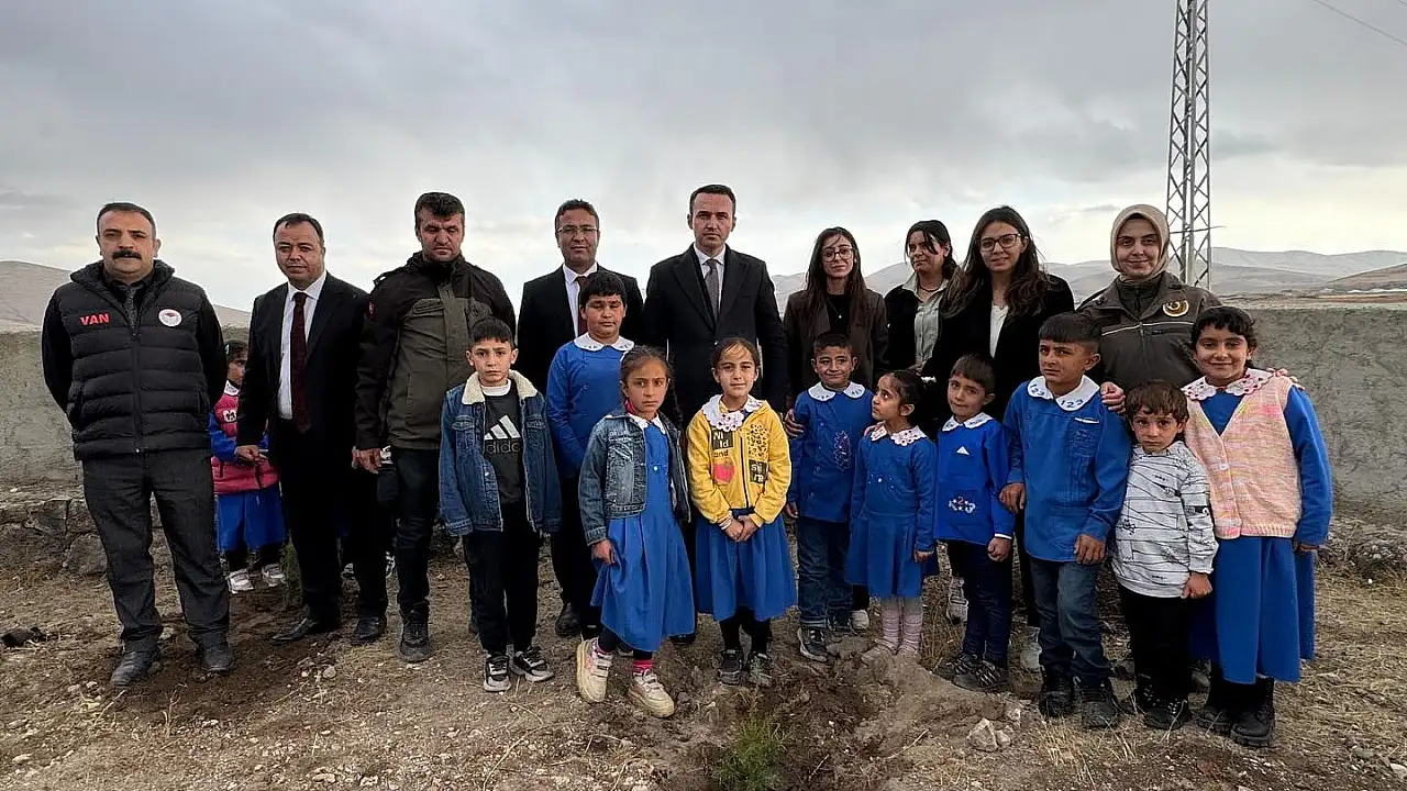 Çaldıran Kaymakamı Süleyman Bakan, öğretmenler ve öğrencilerle birlikte Yaşkütük İlkokulu'nda düzenlenen fidan dikim etkinliğine katıldı.