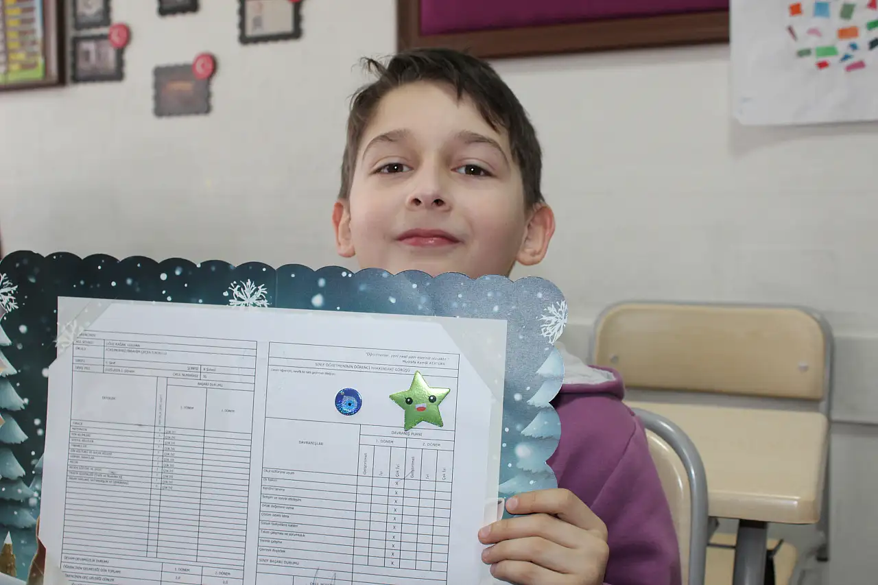 Minik öğrencilerden Ender Bozkurt ilk karnesini almanın mutluluğunu yaşadığını belirterek: