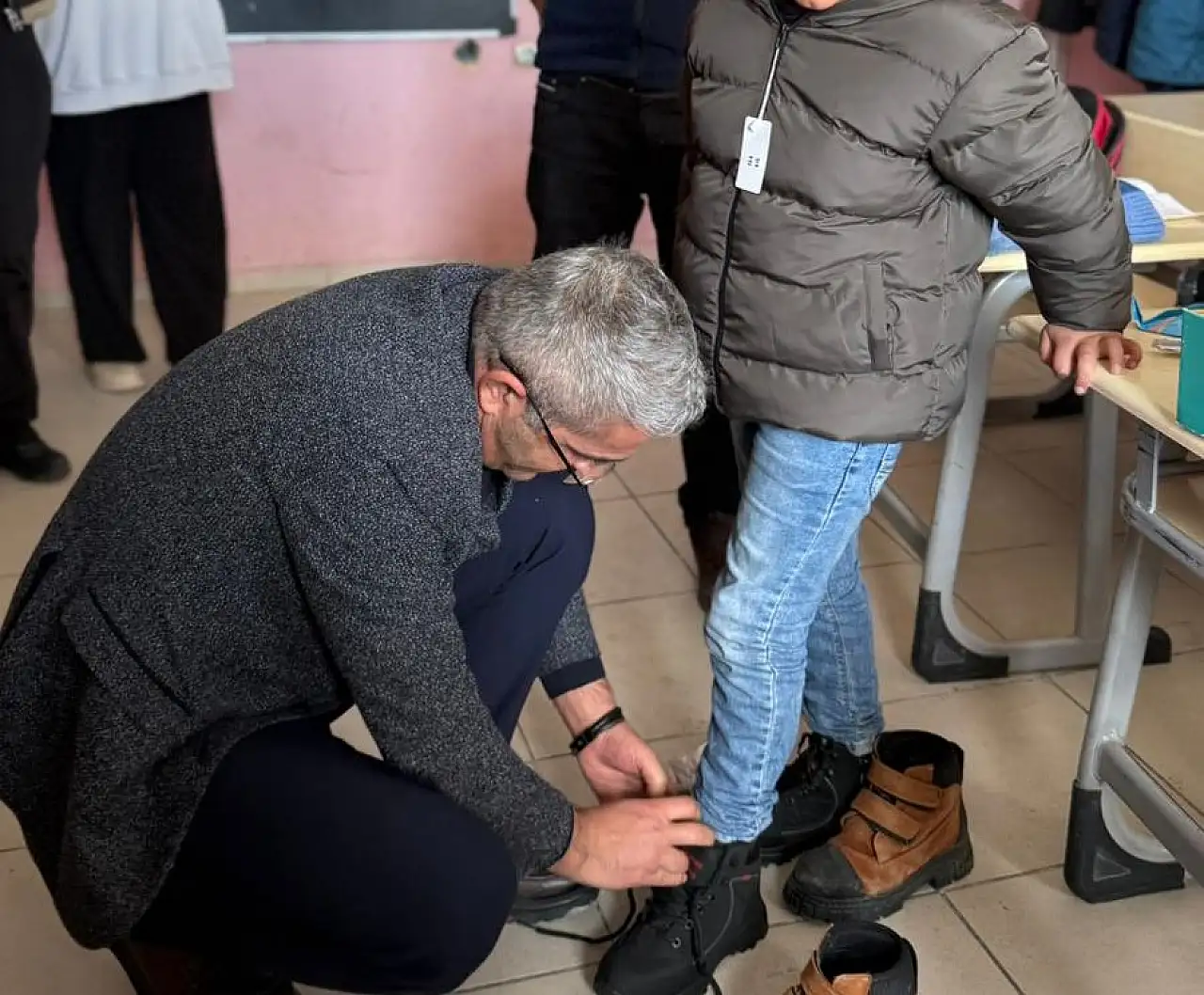Ağrı İbrahim Çeçen Vakfı , Doğubayazıt'taki öğrencilere bot ve mont yardımında bulundu.