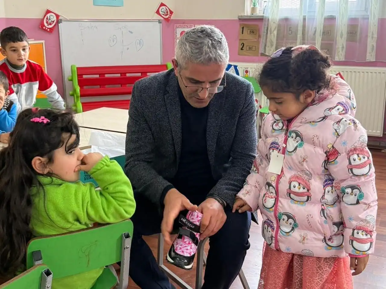 Minik öğrencilere kış hediyeleri dağıtıldı, gönüller ısındı