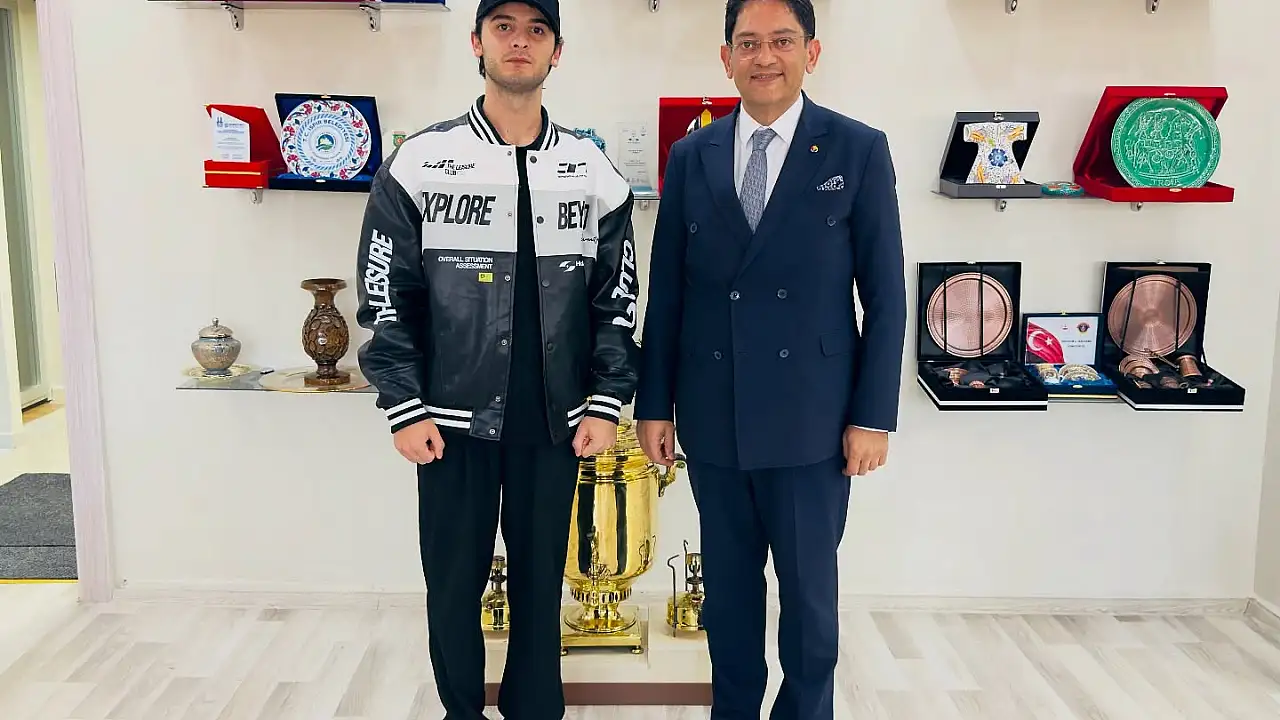 Model United Nations Konferansı Yöneticisi Selim Morkoç, Erzurum Ticaret Borsası Başkanı Hakan Oral'ı ziyaret ederek konferans hakkında bilgi paylaştı ve olası iş birliği konularını görüştü.